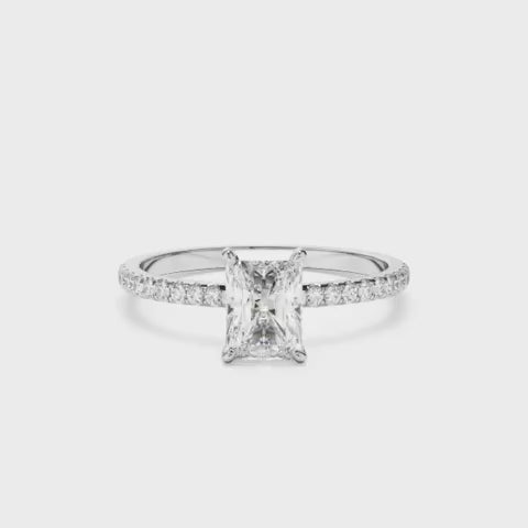 Alma Engagement Ring – Radiant Brilliance with a Diamond-Set Band