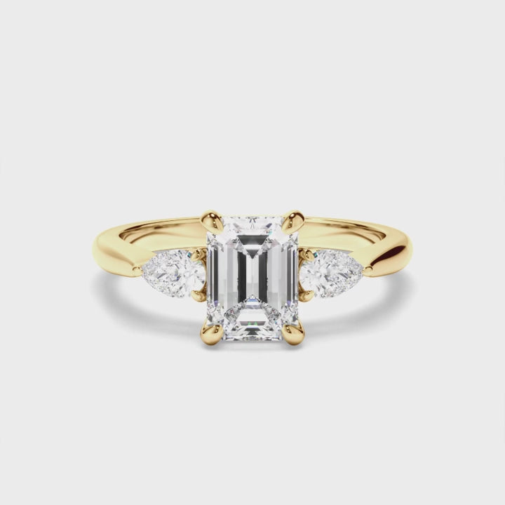 The Cornelia Engagement Ring is a breathtaking design that blends classic elegance with understated glamour. Featuring a radiant emerald-cut centre stone, this ring showcases clean lines and timeless brilliance. The centre stone is beautifully complemented by pear-cut shoulder stones, adding a touch of softness and sophistication. Paired with a sleek, plain band, the Cornelia ring is the perfect symbol of enduring love and refined taste.