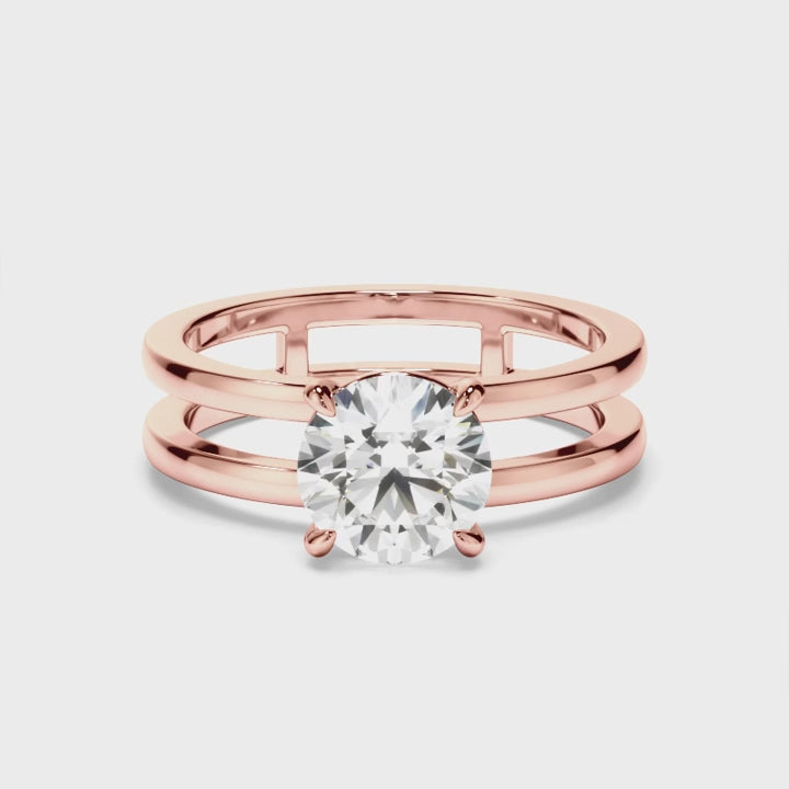 The Dasha Engagement Ring is a beautifully crafted custom-made piece that blends timeless brilliance with contemporary refinement. At its heart, a dazzling round brilliant-cut diamond is set to showcase maximum fire and brilliance. The design is elevated by a split half-round band, offering a delicate yet striking look that enhances the centre stone while ensuring a comfortable and elegant fit.