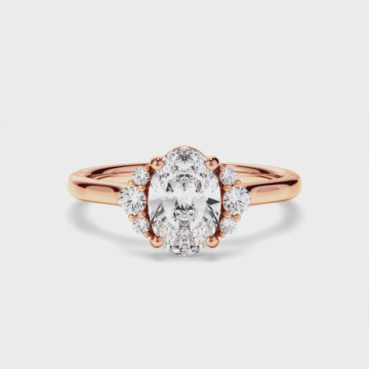 - Oval-cut centre stone, offering timeless beauty with a graceful silhouette