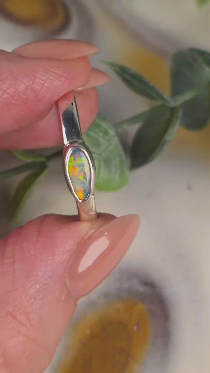 This distinctive Freeform Cut Opal Doublet Ring showcases the raw beauty of Australian opal, thoughtfully handcrafted in South Australia. Set in Palladium Silver, the opal is secured in a full bezel setting, highlighting its unique natural contours while offering excellent durability for everyday wear.