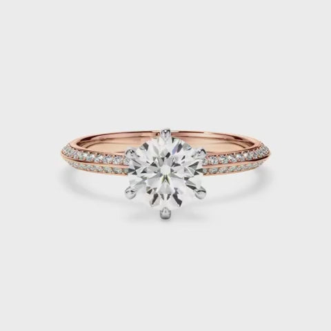 - Round brilliant-cut centre stone, offering maximum brilliance and fire