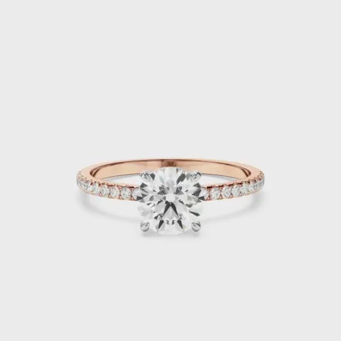 - Round brilliant-cut centre stone, offering maximum fire and brilliance