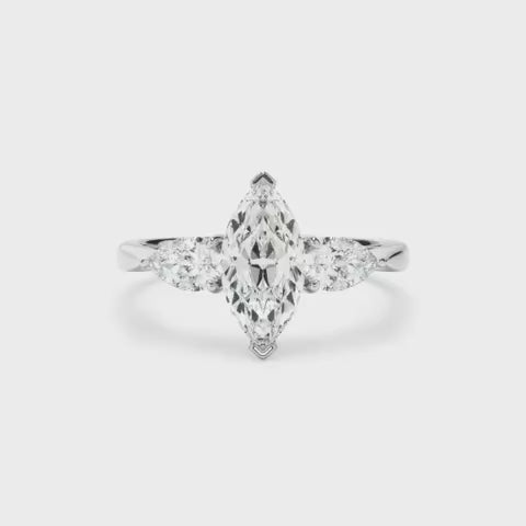 - Marquise-cut centre stone, offering an elegant and elongated silhouette with exceptional brilliance