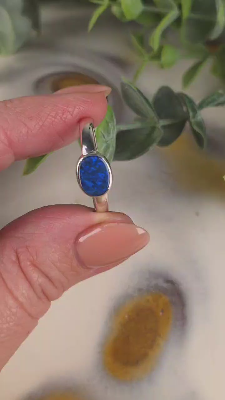 Oval Opal Doublet Ring – Palladium Silver, Size U
