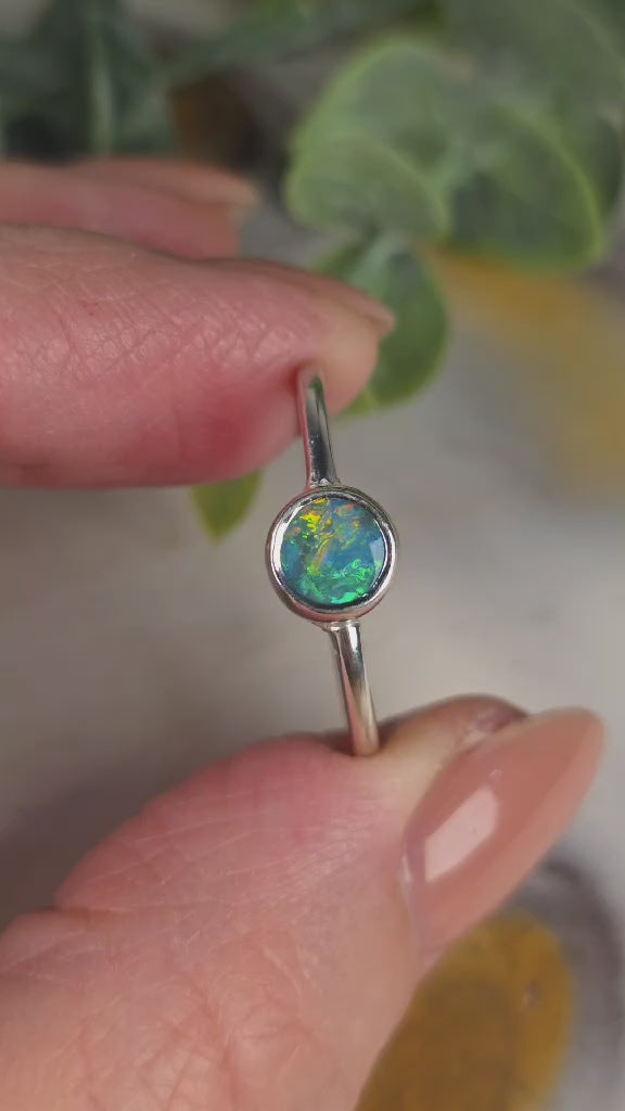 This ring is a beautiful blend of everyday durability and eye-catching elegance. The round cut opal offers a soft, balanced shape, while the secure bezel makes it perfect for daily wear without compromising style.