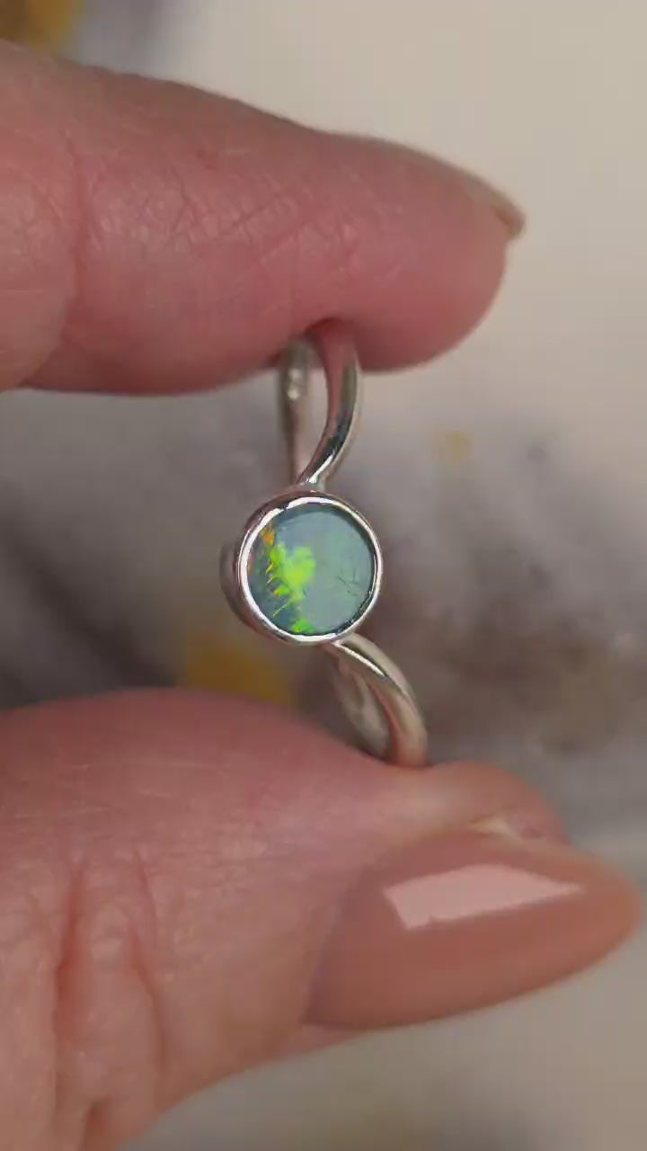 Round Coober Pedy Opal Ring – Palladium Silver, Size S½