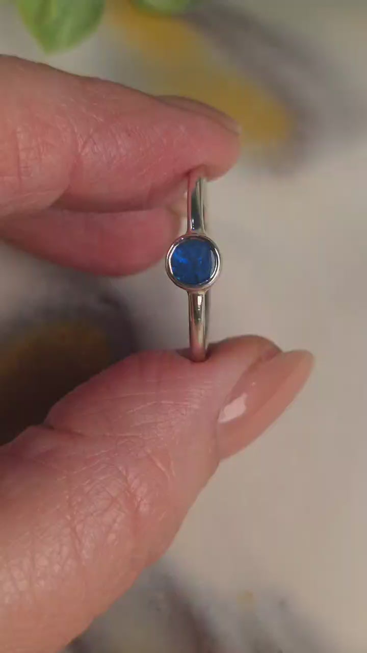 The clean, minimalist setting complements the opal’s striking flashes of blue—reminiscent of ocean light and open skies—making this a timeless and wearable piece.
