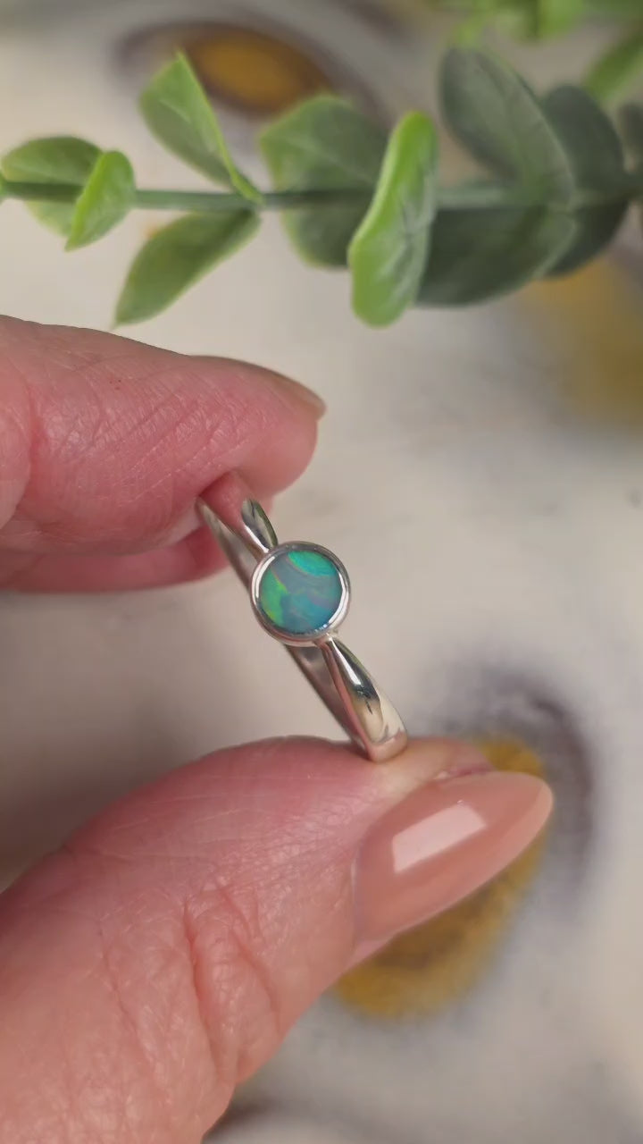 Round Opal Doublet Ring – Reverse Taper Band, Size U