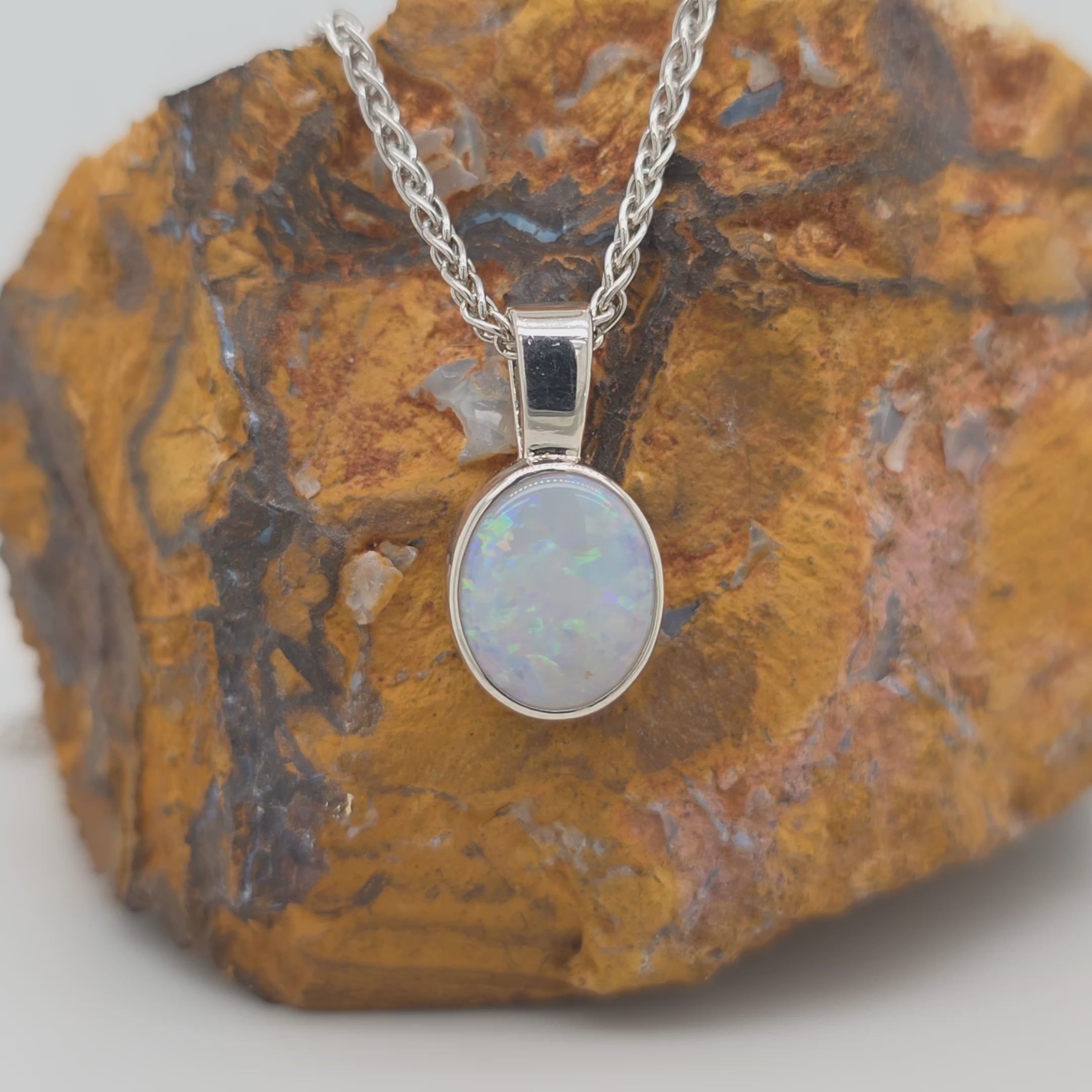 Solid Opal Pendant – 1.79ct, Palladium Silver with 50cm Chain