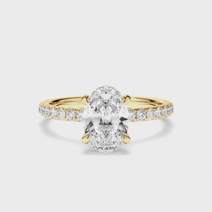 - Oval-cut centre stone, offering a timeless silhouette with exceptional brilliance